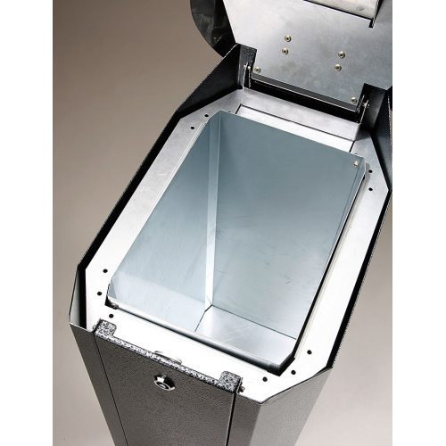 - Abfallbehälter mit abklappbarem Deckel am Scharnier.