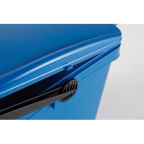 - Der Behälter ist mit einem Verschluss und einem Kunststoffgriff mit Schließmechanismus versehen (der kippbare Griff verschließt den Behälterdeckel).