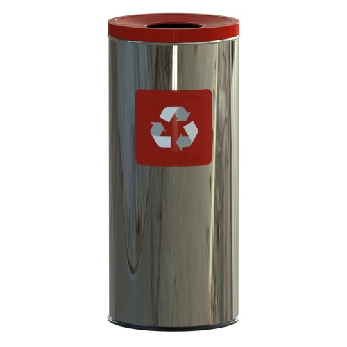 - Rostfreier Abfallbehälter zur Sortierung von recyclebaren Abfällen, wie Kunststoffe, Papier, Glas und weitere.