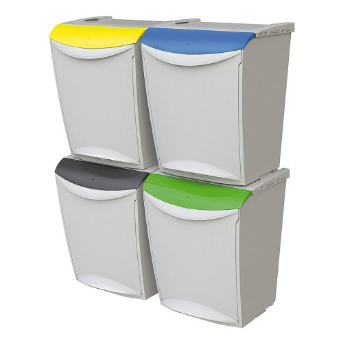 - Deckel in blauer, grüner, gelber und schwarzer Farbe dienen zur einfachen Orientierung beim Sortieren der einzelnen Abfallsorten.