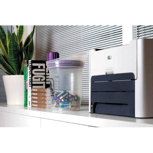- Wird standardgemäß mit transparentem Körper und violettem Deckel geliefert.