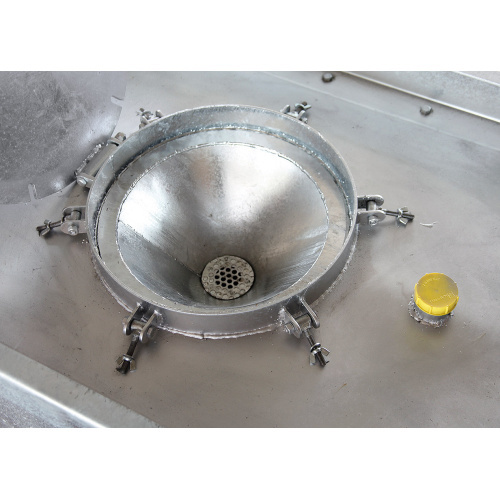 - Die Befüllöffnung ist mit einem Netz, gegen das Eindringen von Verunreinigungen in den Behälter, versehen.