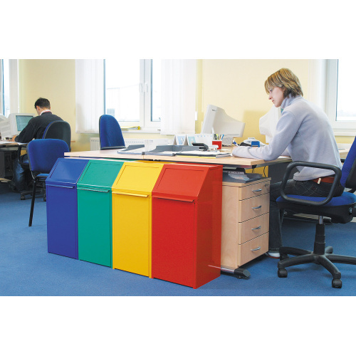 - Die Größe des Behälters ermöglicht die Verwendung in Fertigungsbereichen als auch in Büroräumen.