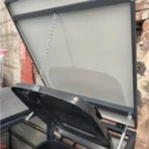 - Deckel mit Sicherung in offener Position mit der Möglichkeit, den Behälterdeckel mit einer Kette für einfaches Öffnen des Behälters zu sichern.
