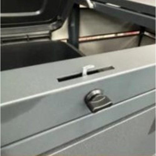 - Ausgestattet mit einer Dämpfungsunterlage für den Deckel und Drehverschluss für Deckel und Tür.