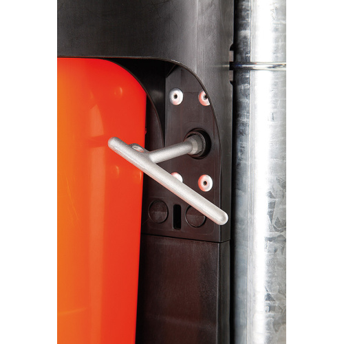 - Mit einem dreieckigen Schloss für die Entnahme des Gefäßes versehen.