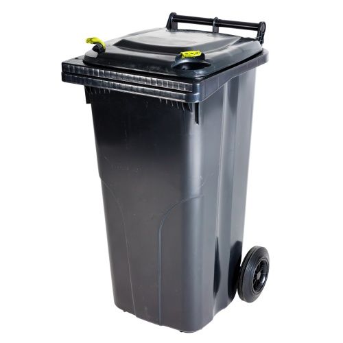 Einführung » Behälter für Abfall » Behälter für kommunalen und... » Plastikmülltonnen » Kunststoffbehälter 120 l - schwarz, Clips gelb