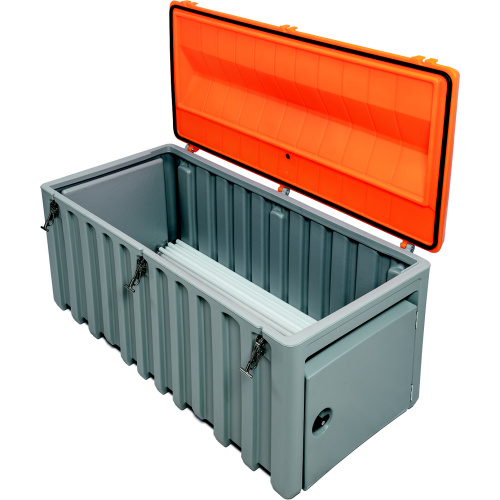 - Ausgestattet mit integrierten Griffen, Deckelbefestigung und 3 Edelstahlschnallen zum Verschließen der Box.