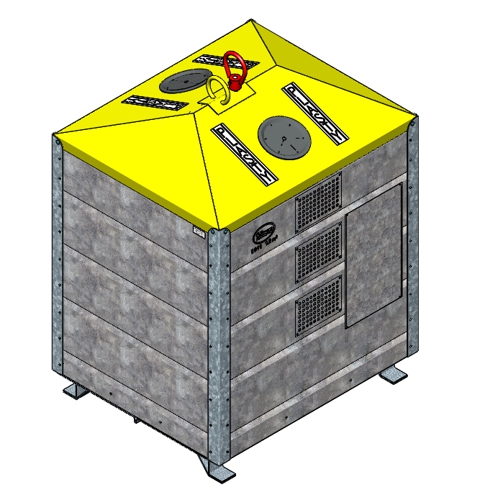 - Der Container besteht aus einem robusten, feuerverzinktem Rahmen, Wänden aus verzinkten Profilblechen und einem Deckel mit Einwurföffnung in der Farbe der entsprechenden Abfallsorte.