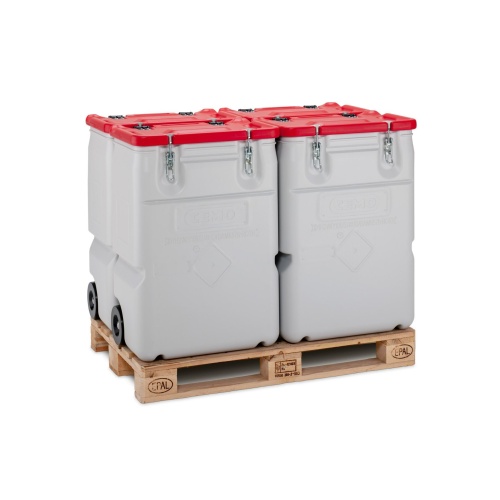 Kunststoffbehälter mit einem Volumen von 170 l für feste Gefahrstoffe.