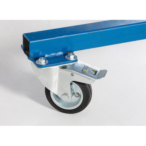 - Für den einfachen Umgang mit der Schutzwand sind sie an der einen Seite mit bremsbaren Rädern mit einem Durchmesser von 80 mm versehen und auf der anderen Seite sichert ein 600 mm breiter Stützfuß die Stabilität.