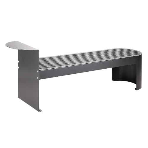 - Die Bank ist standardmäßig aus gebogenem Stahlblech und Profilen aus verwertetem Kunststoff gefertigt.