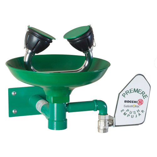 - Augenduschen mit Handbetätigung werden an der Wand installiert.